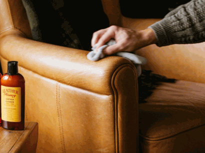 - Clean: Start with a soft cloth or vacuum attachment to remove any dust or dirt. Then mix mild soap and warm water, wet a cloth with the mixture, and wipe down the leather. Be careful not to over-soak or use strong cleansers.