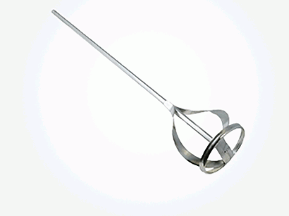- First, attach the mixing paddle to a power drill.