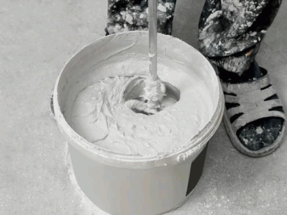 - Add the plaster gradually while continuously stirring with a mixing paddle.