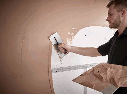 - Apply a base coat of plaster using a trowel.