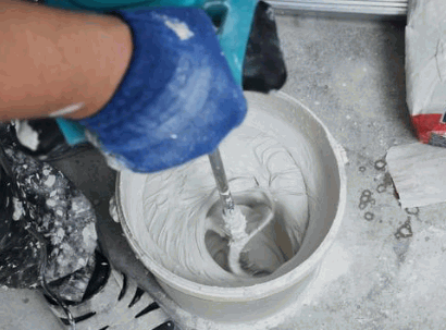 - Turn on the power drill and mix the plaster and water together.